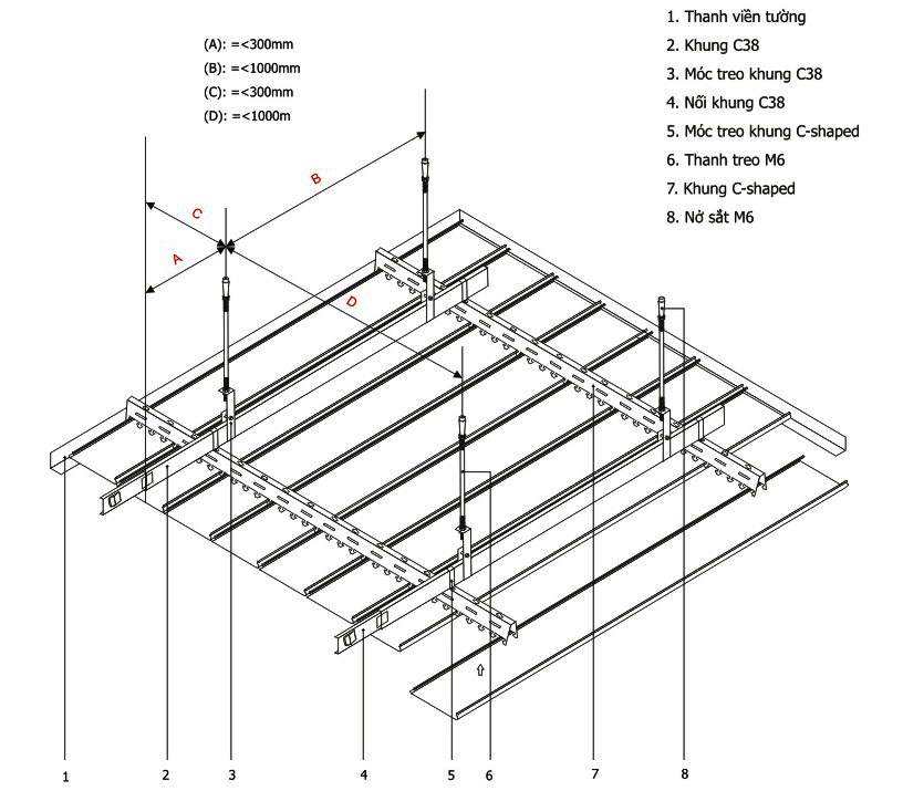 Quy cách và cấu tạo hệ trần nhôm C Shape